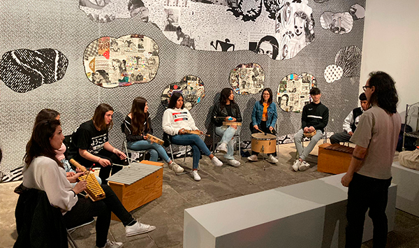 Acompanyats per l’artista en residència Pablo Volt (STA), el grup va presentar el projecte que inclou, a més del collage visual, una peça d’improvisació musical d’uns deu minuts de durada on, a través dels instruments de percussió i de la veu, va transportar al públic per diferents paisatges sonors explorant una seqüència amb moments de calma, tensió, llocs en comú i punts de fuga.