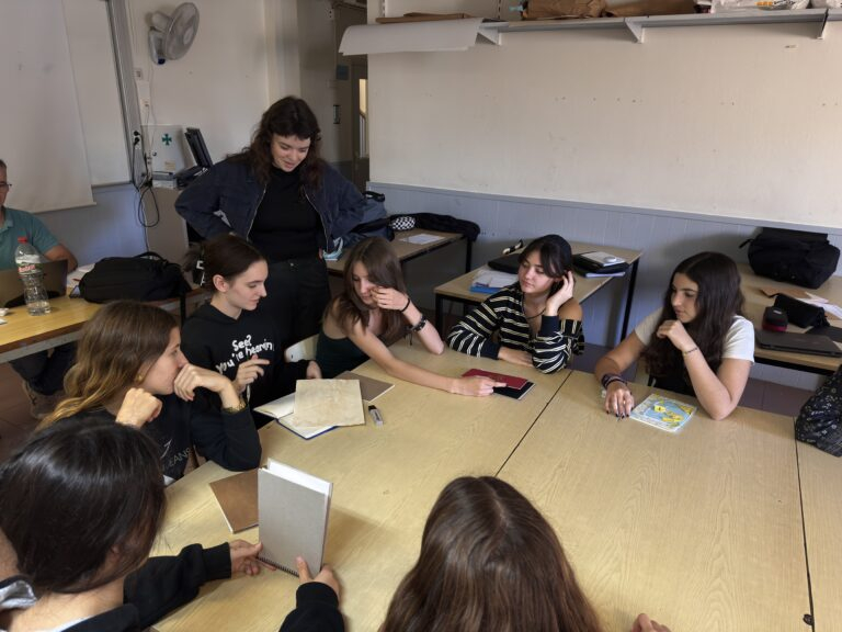 La residencia de Helena Civit en el Institut Josep Serrat i Bonastre ha comenzado entre objetos, conocimientos e historias, dentro y fuera del instituto.